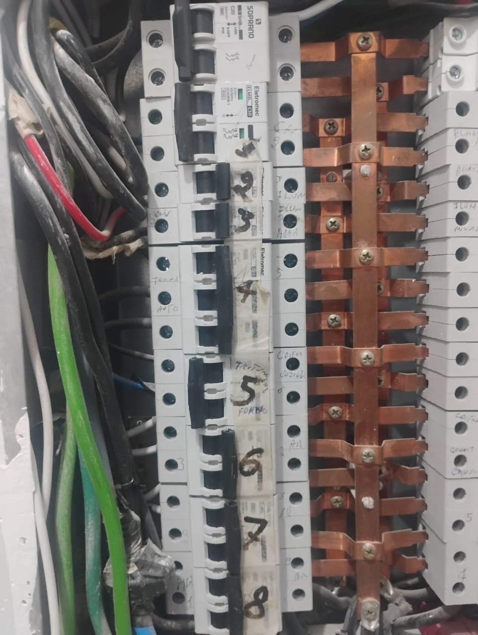 Disjuntores que desarmam frequentemente, tomadas ou interruptores quentes, cheiro de queimado ou faíscas ao conectar dispositivos são sinais de problemas elétricos.